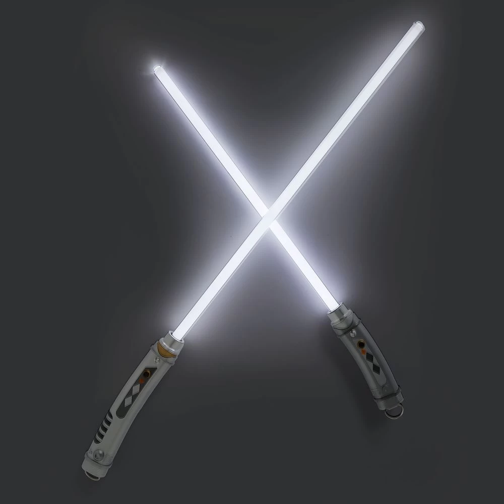 Feel at one with the Force with this pair of Ahoska Tano Legacy Lightsabers. Ahsoka, former Padawan to Anakin Skywalker and a veteran in the battle of the Clone Wars, is known for her strong leadership and skill. This detailed set of reproductions features a Single-Bladed Lightsaber and Shoto Saber, with their distinctive curved hilts and white blades, and includes impact sensors and unique impact sound effects.